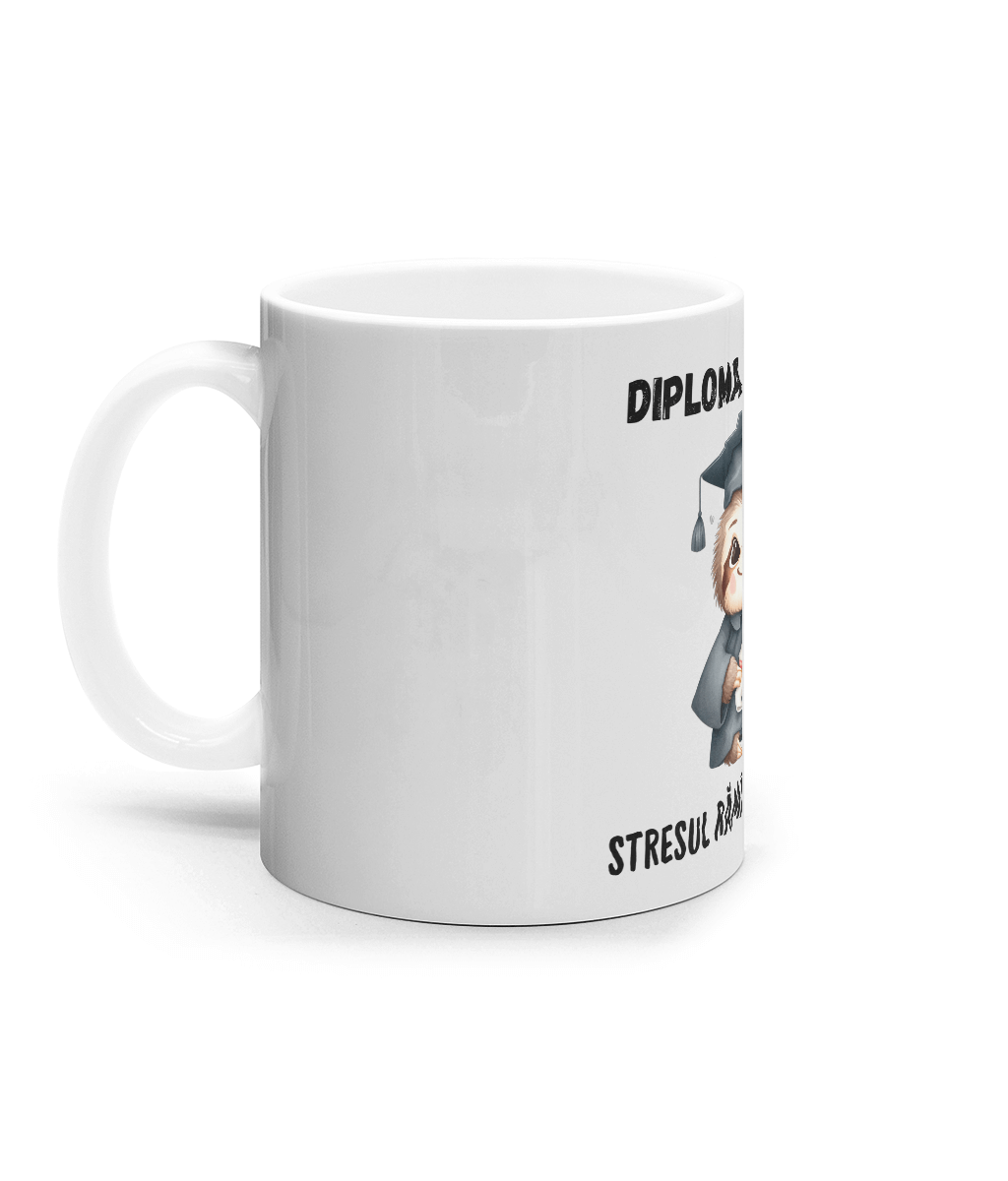 Cană „Diploma e a mea. Stresul rămâne al vostru” – Pentru leneșul inteligent care a câștigat jocul