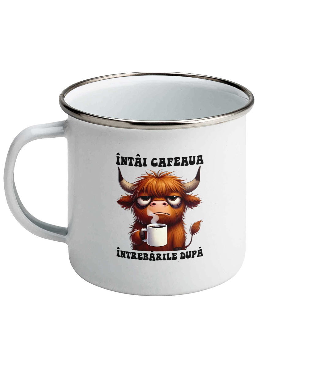 Cană „Întâi cafeaua, întrebările după” – cadoul perfect pentru cei care nu vor să fie deranjați dimineața