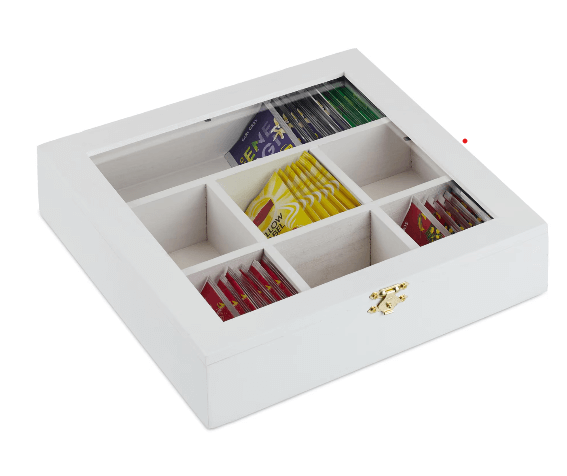 ✔ Număr compartimente: 7 compartimente – 6 mici și 1 mare pentru a organiza diferitele tipuri de ceai