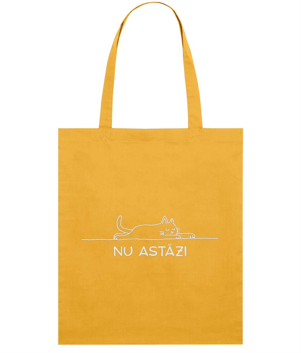 Sacoșa „Nu astăzi” e companionul ideal pentru zilele în care vrei doar să ieși din casă… dar fără entuziasm. Cu un design minimalist, o pisică obosită și un mesaj cât se poate de sincer, spune exact ce simți, fără să spui nimic.