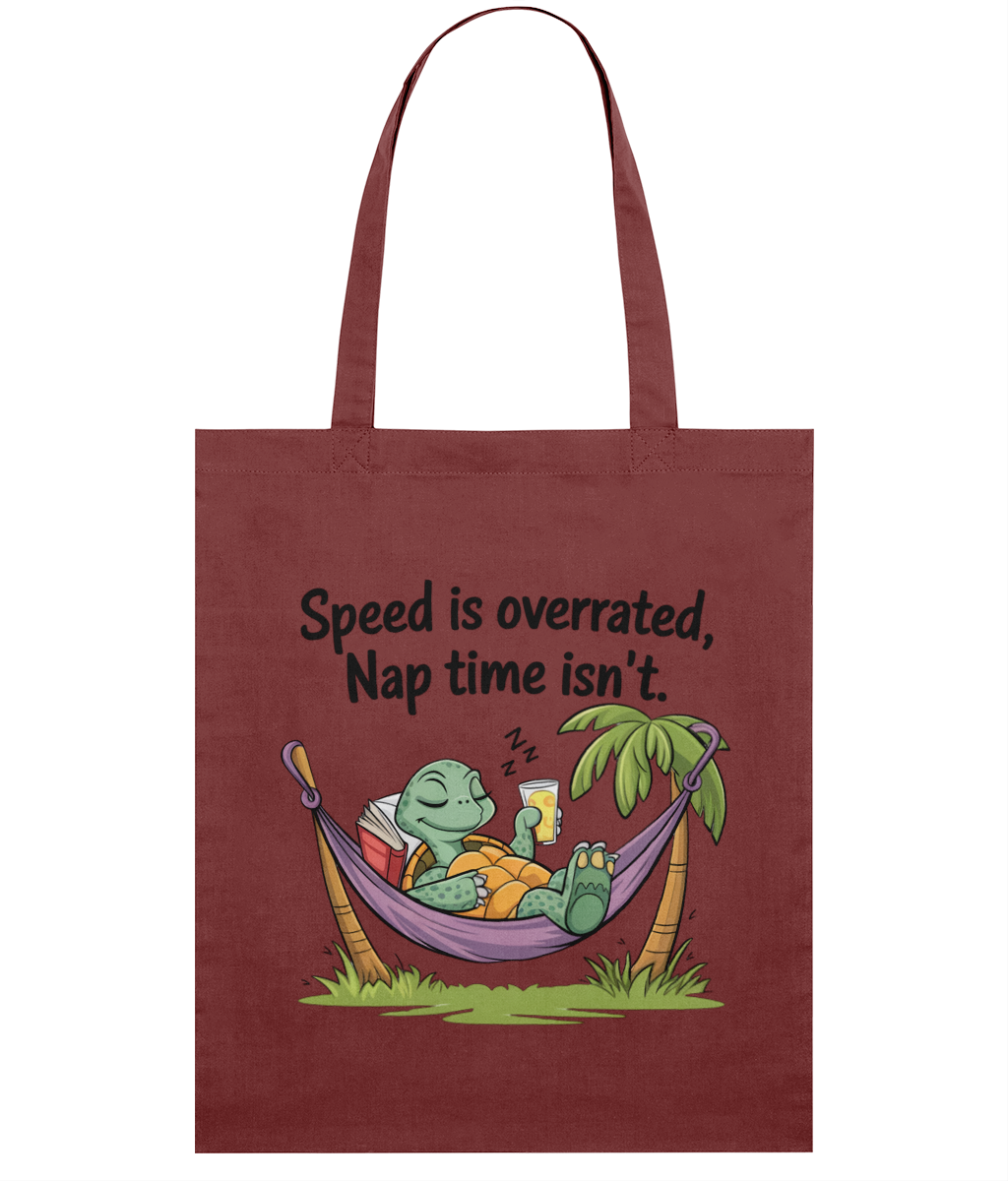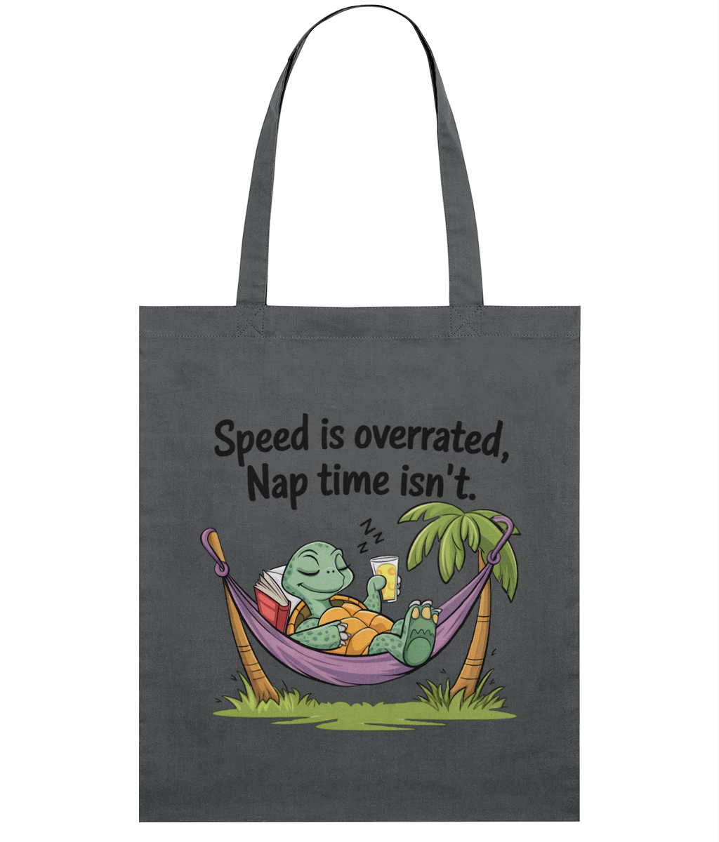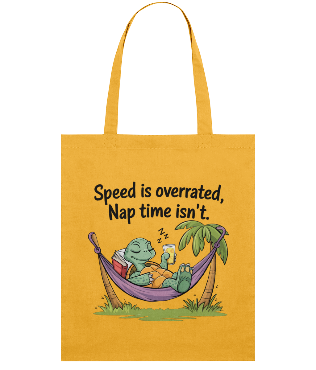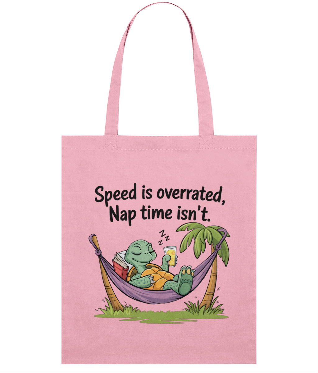 🧘‍♀️ Sacoșă „Speed is overrated. Nap time isn’t” – Pentru relaxații profesioniști