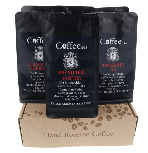 Set de degustare cafea Arabica – 6 tipuri de cafea aromată, prăjită lent și ambalată cu grijă