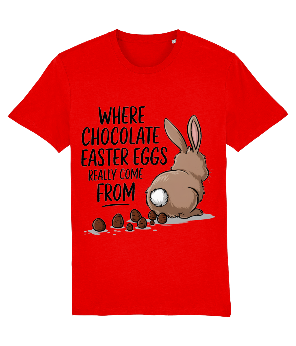 🎁 Tricou Bărbați „Where Chocolate Easter Eggs Really Come From” – Cadou de Paște 🍫🐰💩