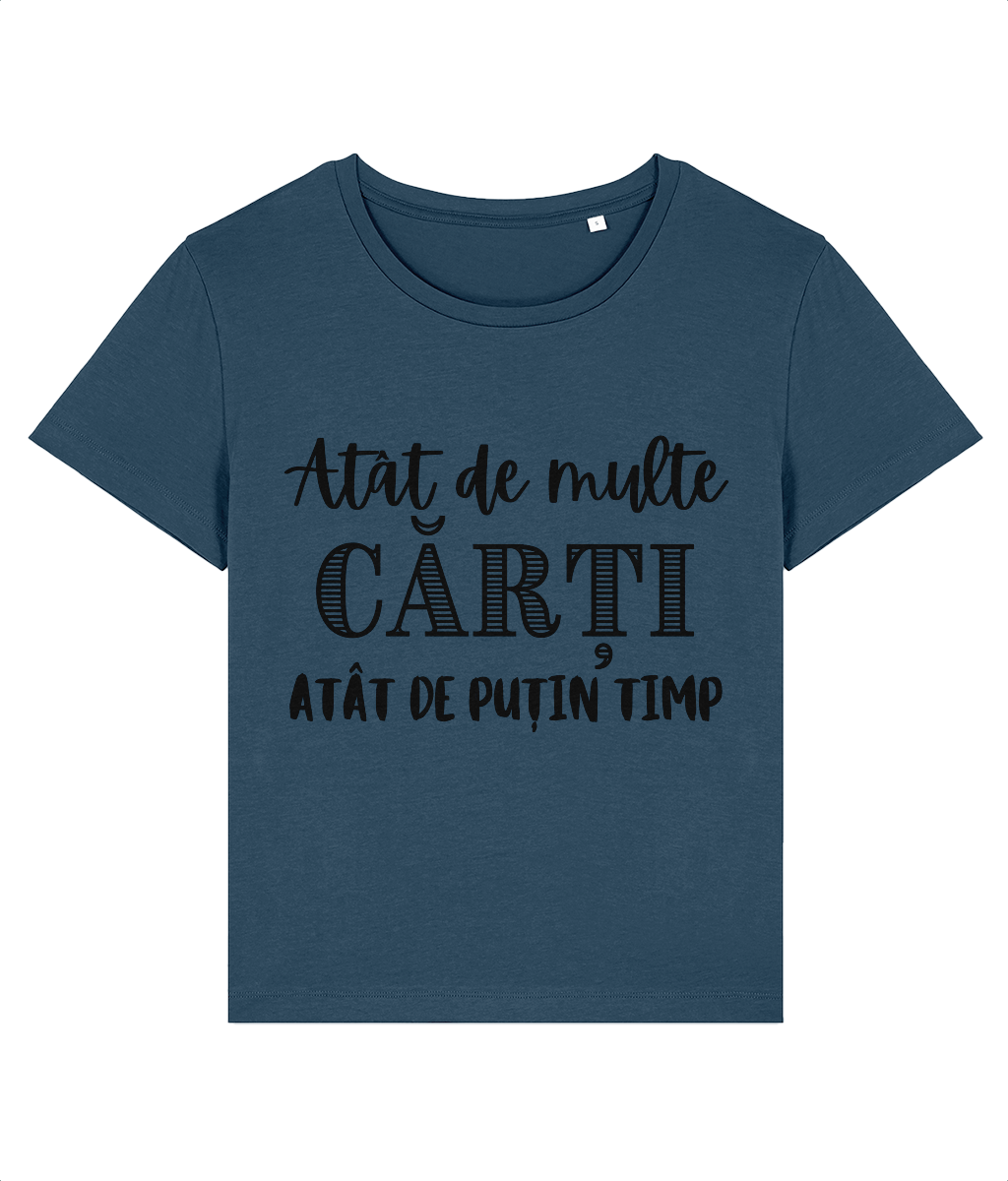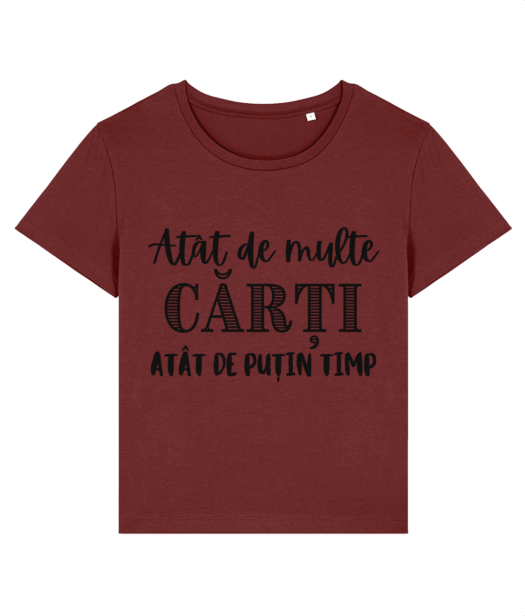 📖 Tricou damă „Atât de multe cărți, atât de puțin timp” – pentru cititoarele pasionate