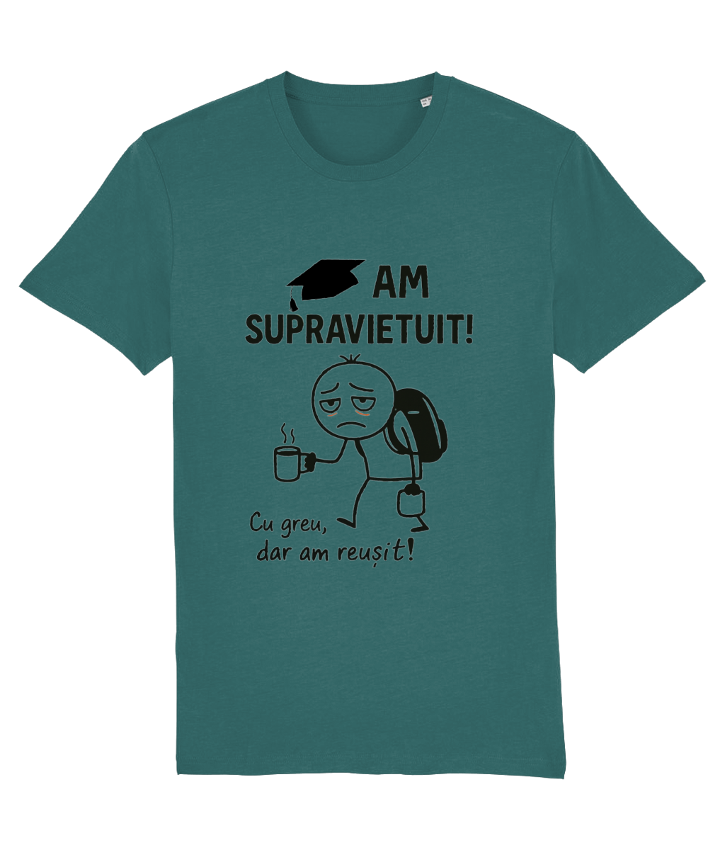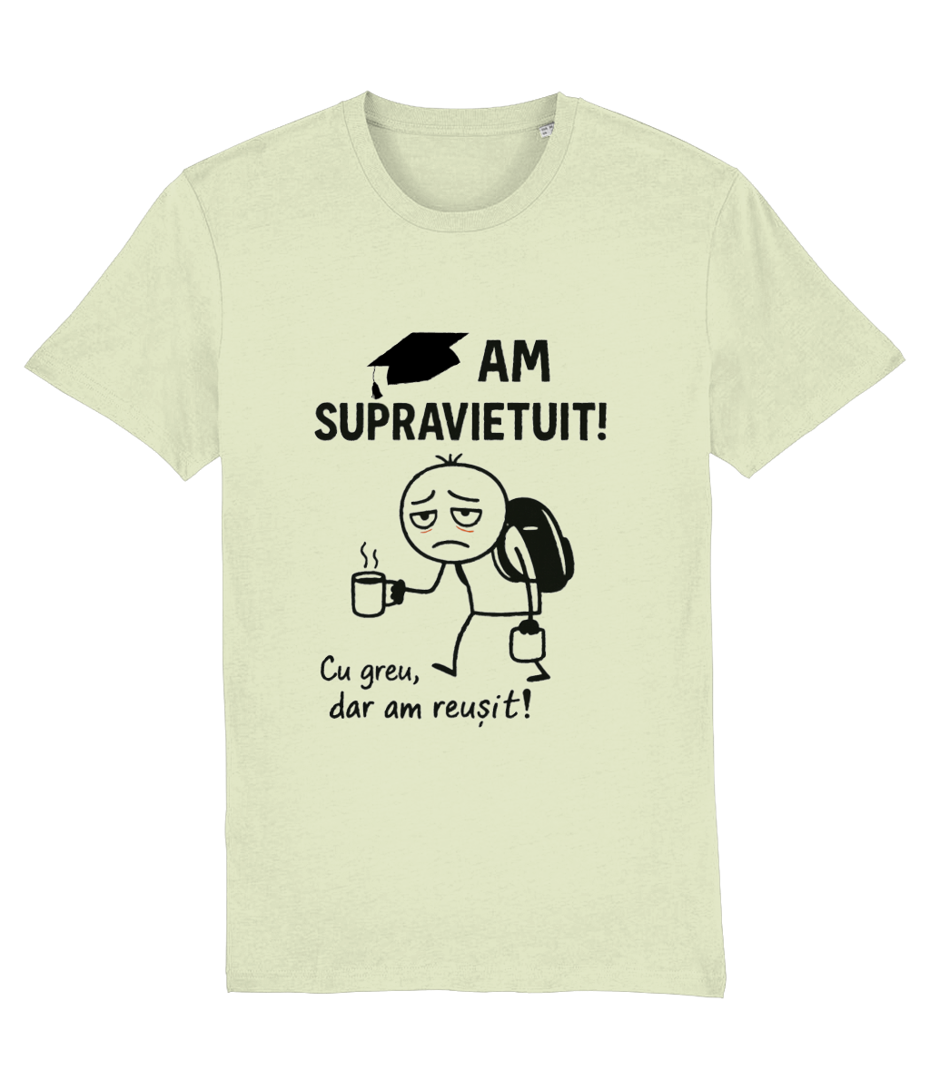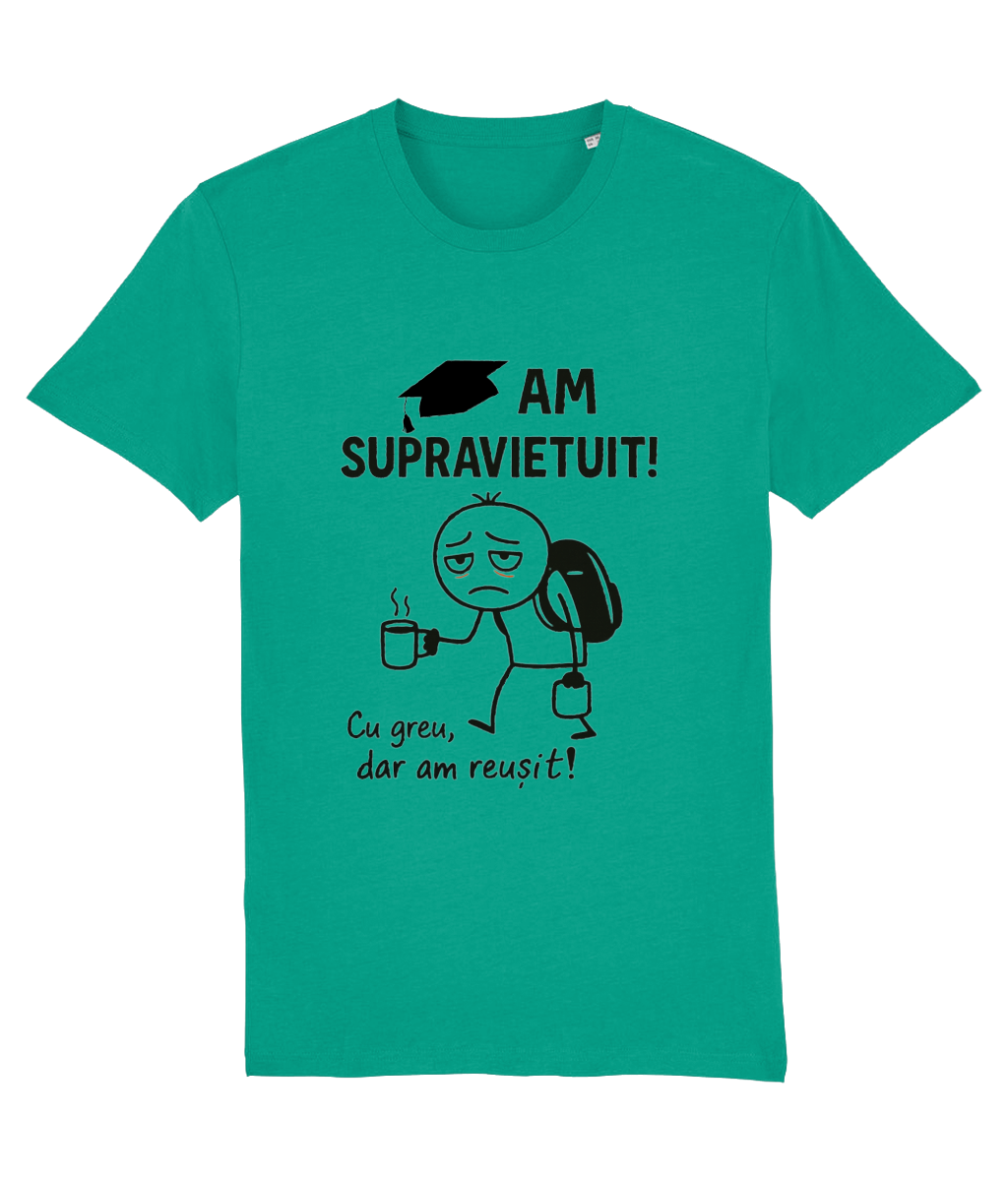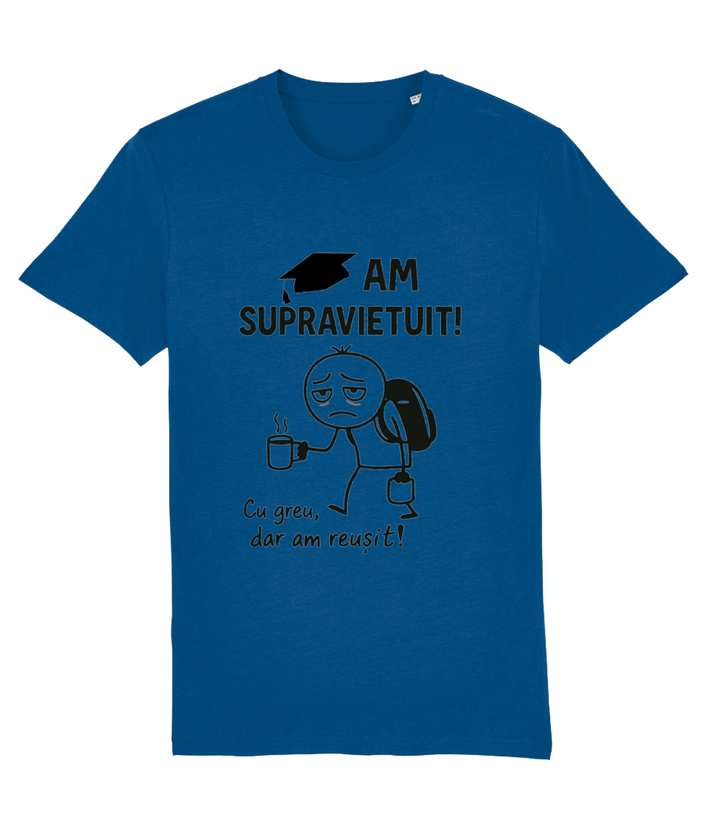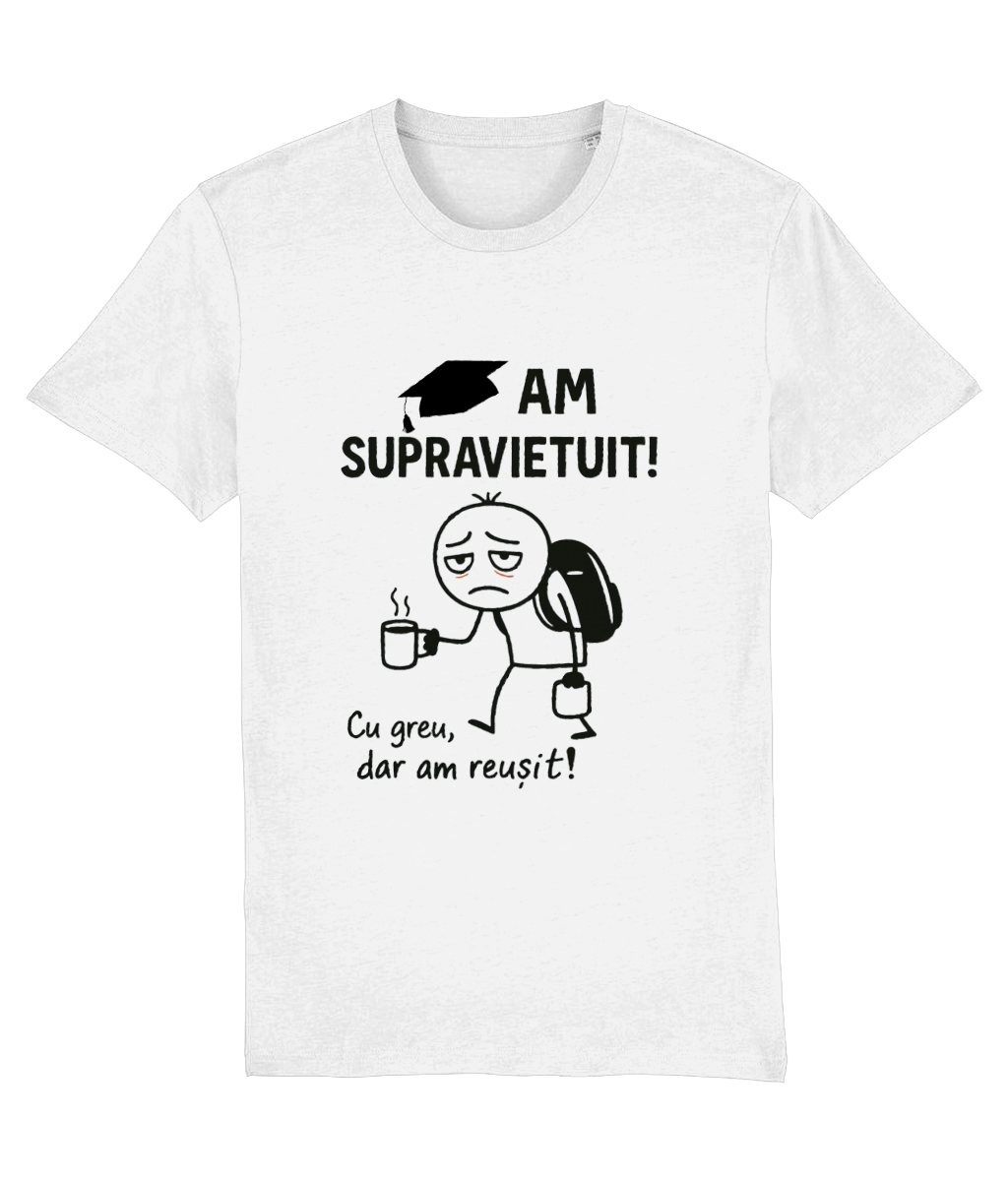 🎓 Tricou „Am supraviețuit! Cu greu, dar am reușit!” – Pentru eroii sesiunii, ai licenței și ai cafelelor la 2 dimineața