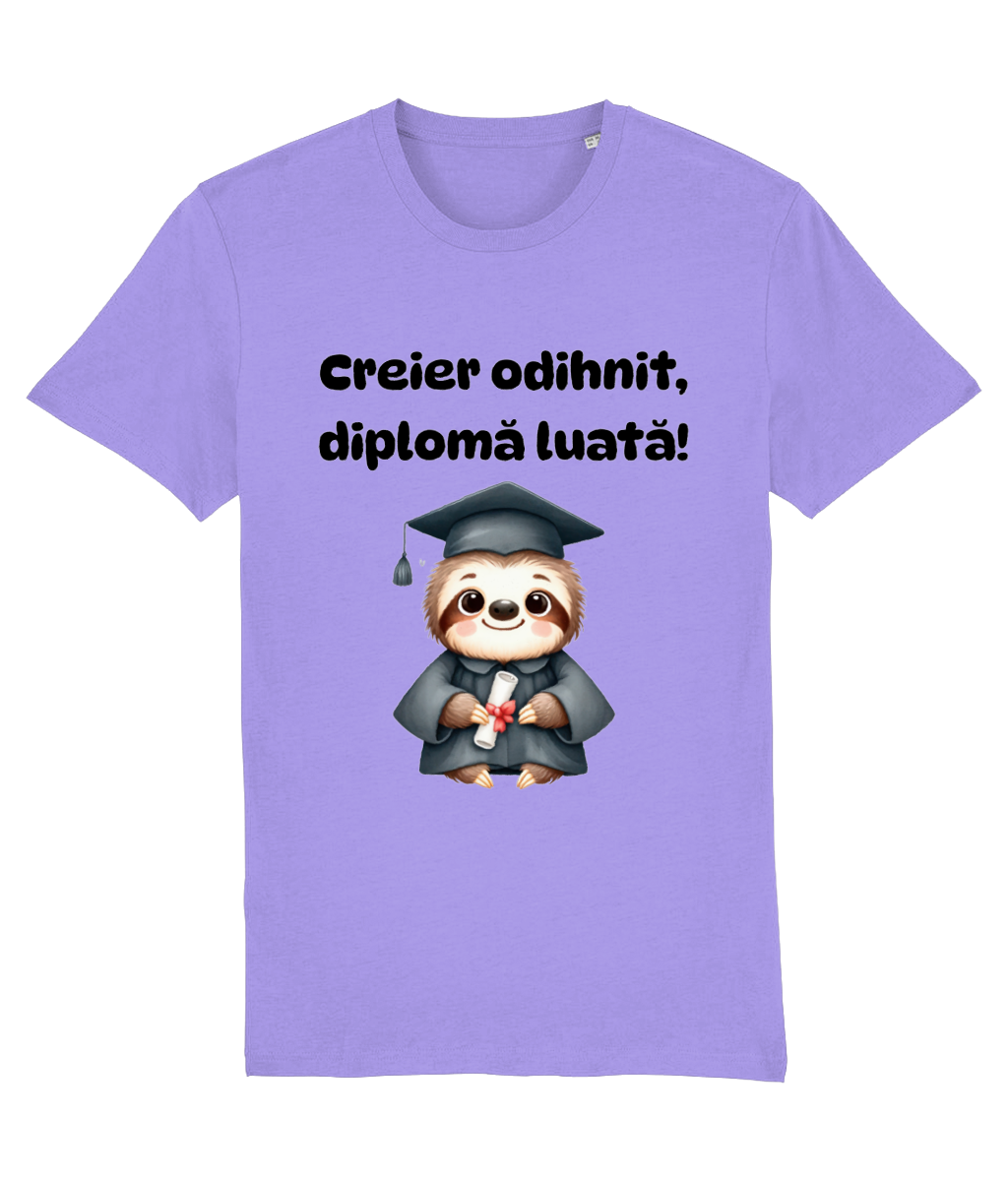 🦥 Tricou „Creier odihnit, diplomă luată” – Leneș, dar eficient